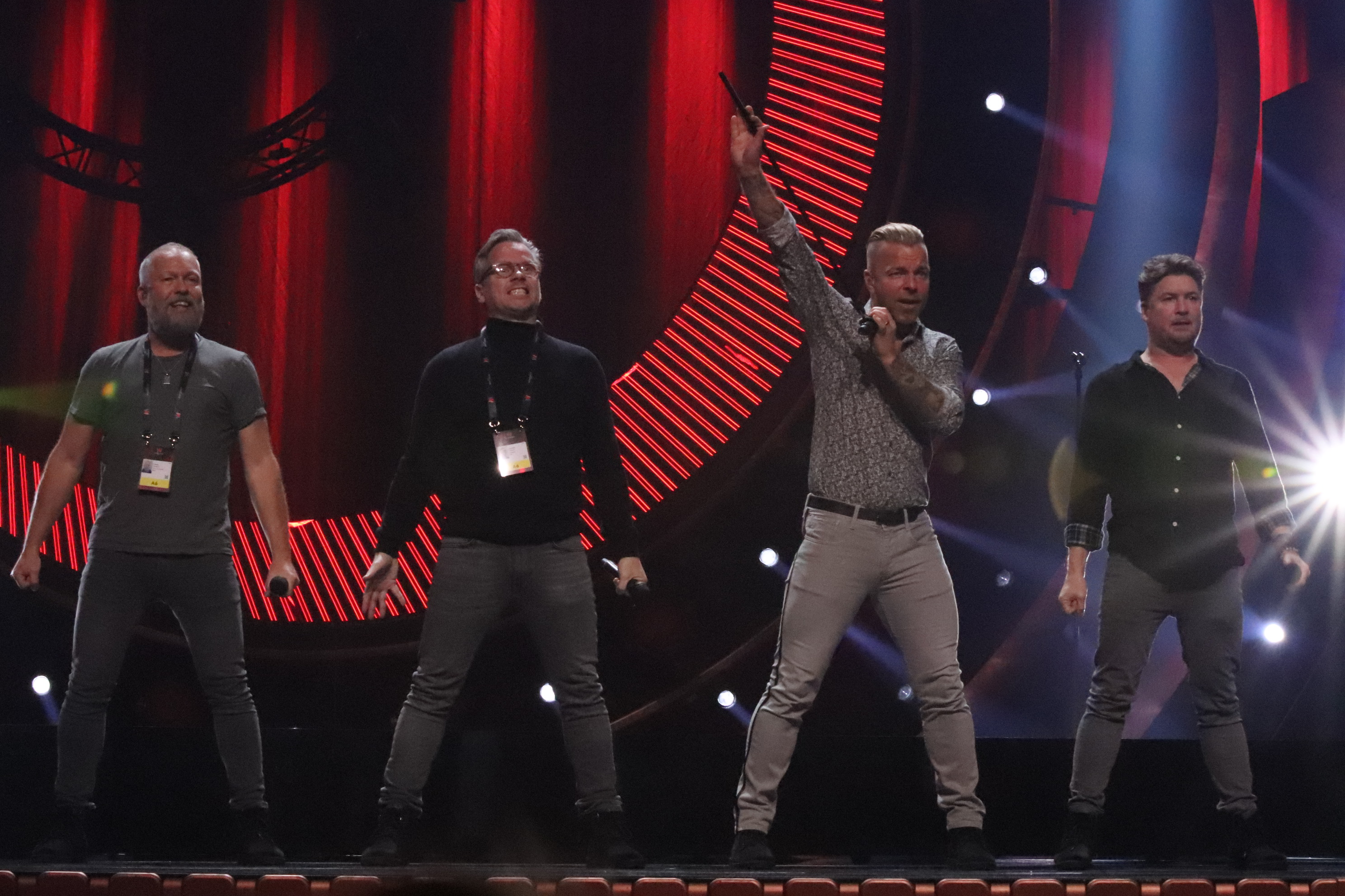 Något ändrat sedan deltävlingen: Nä, det här är misstänkt likt det vi såg för en vecka sedan. Fast det verkar som de fått glittrigare kavajer!