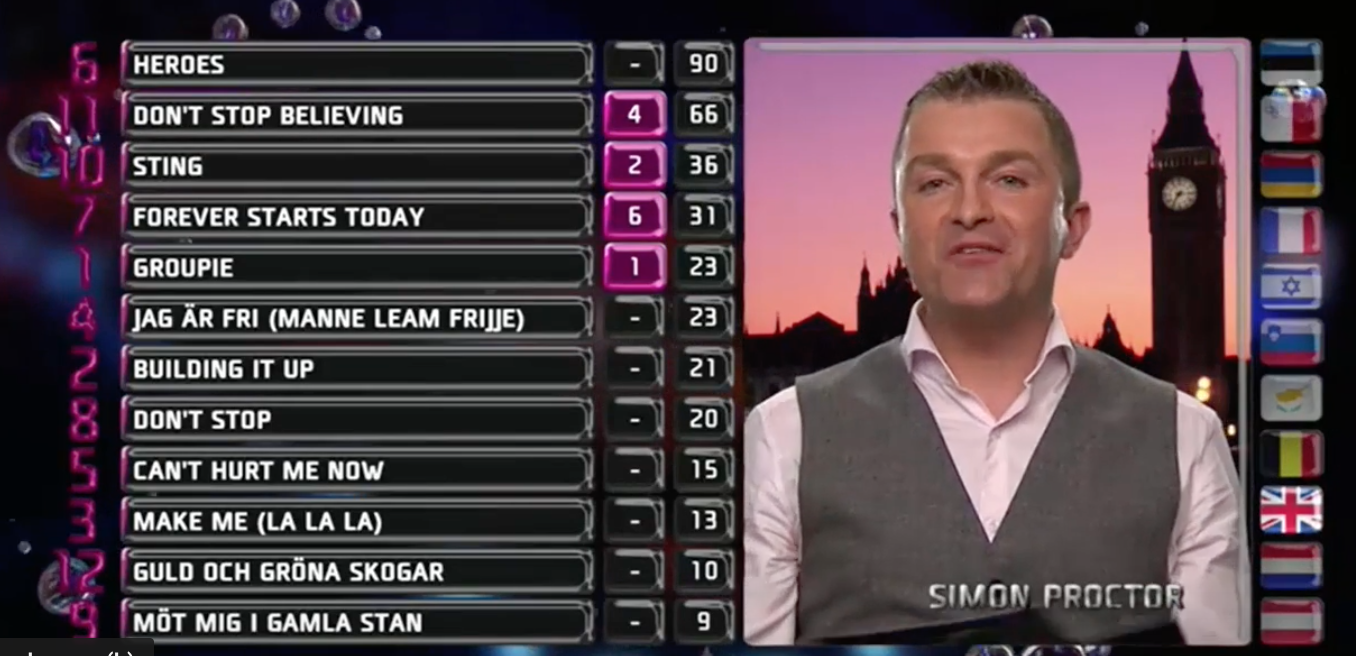 2014 ville britterna ha disco och gav 12 till Alcazar. Sanna fick bara 6 p här men en slags revansch då hon ju kom in på UK Top40 med Undo efter succén i Köpenhamn. Jon Henrik kanske ska sätta sitt hopp om poäng till detta land då han fick 12-poängaren härifrån 2015. Måns fick bara 8 p efter att britterna tyckte att Isas Don´t Stop var ett bättre val att skicka…