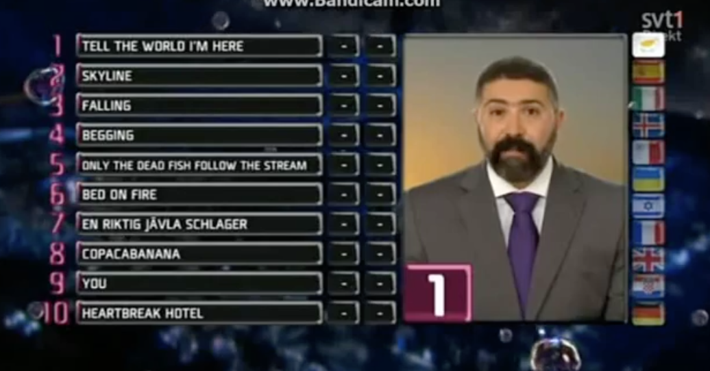 Men året efter var de om möjligt ännu sämre på att enas med svenskarna om vad man borde skicka: You fick noll poäng. De ville helst ha Ulrik Munthers Tell The World I´m Here som vinnare följd av Sean Banans Copacabanana som fick 10-poängaren!