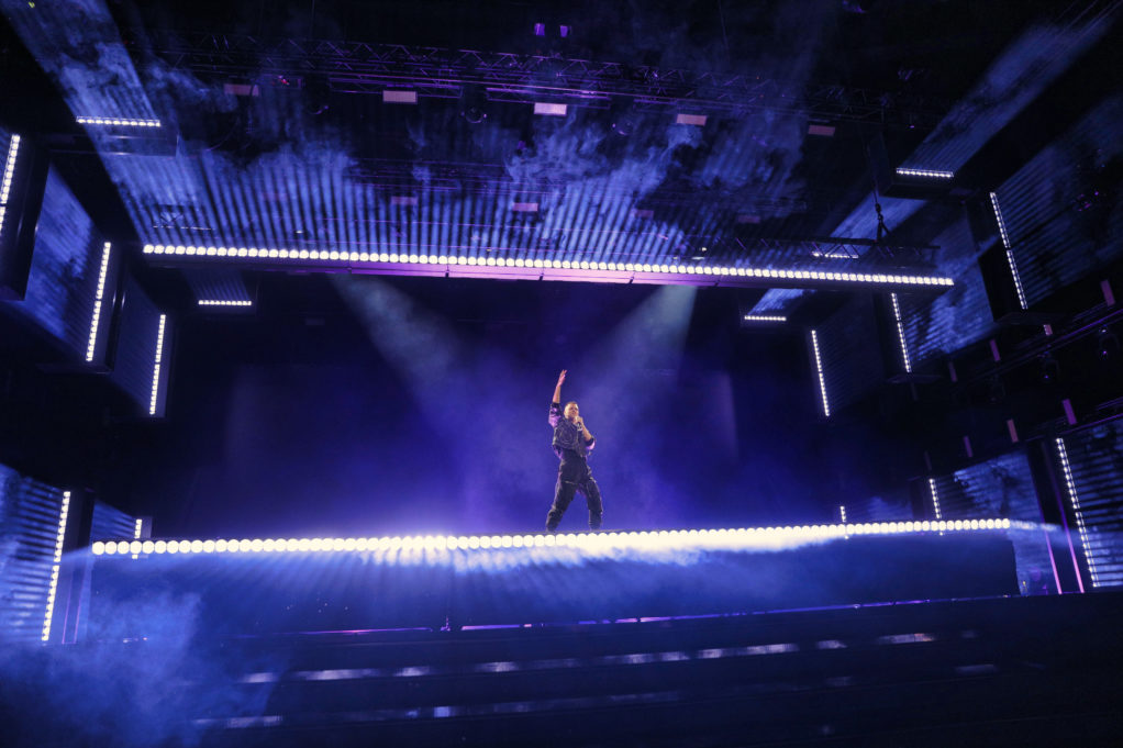 Numret är riktigt snyggt, men numera är vi så bortskämda att det kanske räcker att jag skriver att det ser ut som ett ”Eurovision-nummer skapat av Sacha Jean-Baptiste & Co” för att ni lite ska förstå vad det handlar om… Liamoo är själv på scenen genom hela numret där blått och lila ljus ramar in honom, och LED:en bakom visar hans huvud i olika storlekar. Absolut snyggast tycker jag det är när rader av ljus både över och under Liamoo ramar in honom tillsammans med rök som i en kvadratisk tunnel. Allt är snyggt och luktar ESC-nummer och MTV-gala.