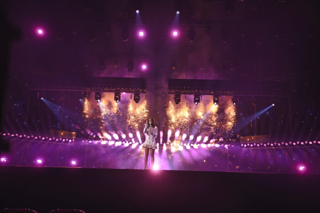 Numret kör lite på samma idé som Laila förra veckan: Låt artisten och låten sköta jobbet! Därför så lägger de bara lila (såklart, årets färg hos SVT) och rosa ljus och en väldig massa glitter runt Eva, och det fungerar ljusår bättre än…tada…tre lila tygskynken. snygga effekter i golvet också när hon går i glitter. Enkelt? Absolut. Men tillräckligt effektivt.