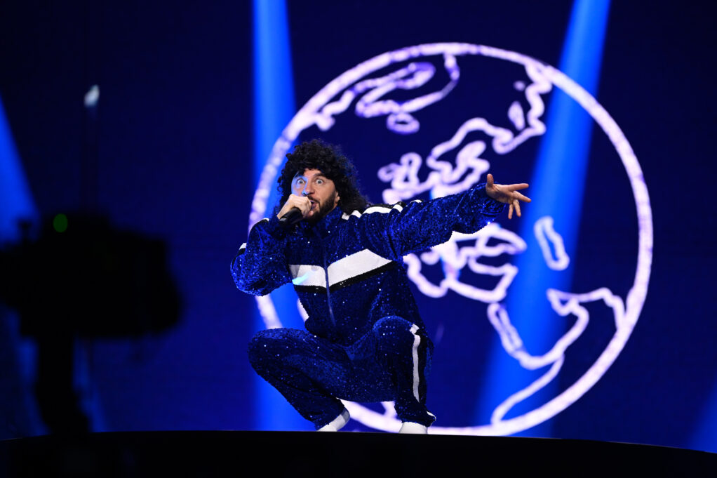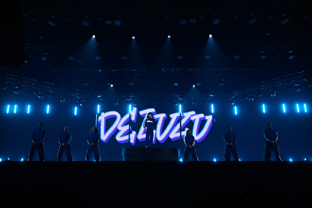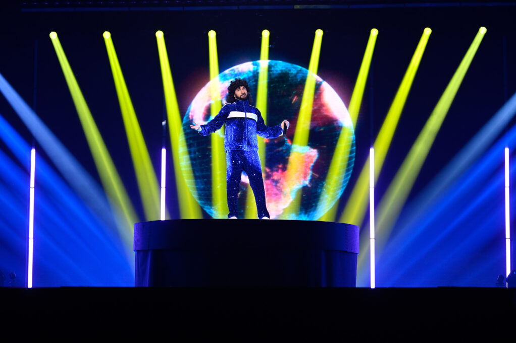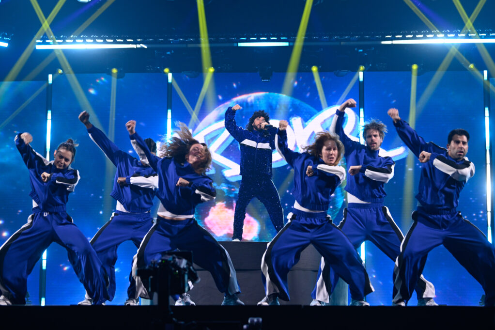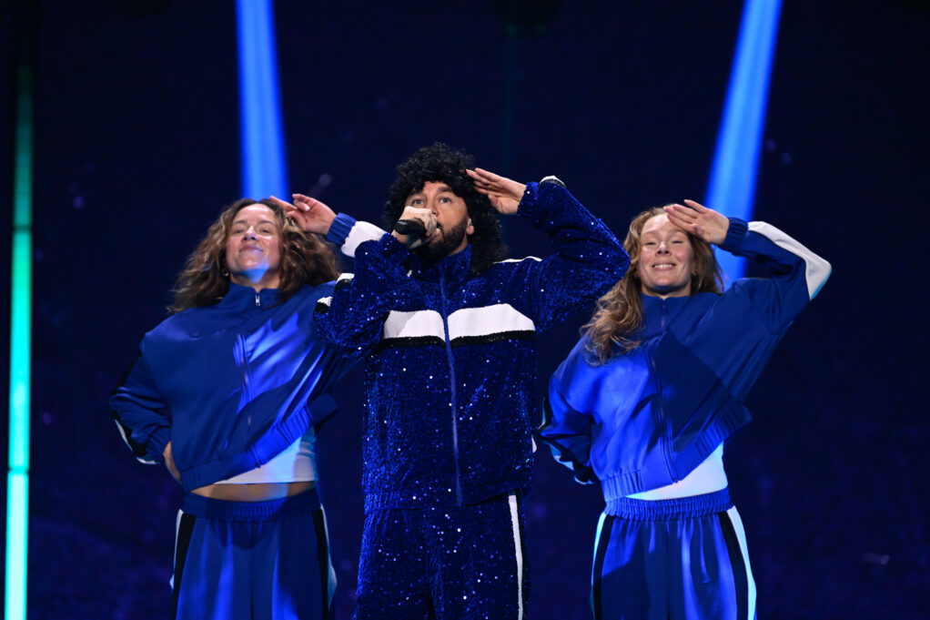 Tur att Lilla Al-Fadji gör alla rätt då! Han står i sin blå träningsdress på en snurrande vit liten snurr scen med sex dansare i samma träningskläder medan LED:Arna visar ord ur texten. Ganska basic i teorin, men väldigt, väldigt effektivt. Jag brukar ju alltid gasta om att blått är kallt, men här har man för första gången fått till en varm blå! Heja alla inblandade! Och den där ”ratt-dansen” lär ju gå varm på varenda förskola från måndag. Med det sagt: Det här är på något sätt ”mognare” än Sean Banans kaotiska nummer brukade vara (mera ”Verka utan löprundan”). Så det är inte en 100%-ig flirt med barnen vilket jag också gillar. Och när vi är framme vid lördag hoppas jag att Fille vågar njuta ännu mer på scenen också så Lilla Al-Fadji får ha kul i Mello.